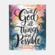 Dieses lebendige Aquarelldesign besticht durch einen majestätischen Himmel und die fliegenden Vögel, gepaart mit der kraftvollen Botschaft "Mit Gott sind alle Dinge möglich. personalisiert mit Namen.