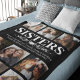 Niedliche personalisierte Schwesterdecke mit einem stilvollen schwarzen Hintergrund, der in jede Farbe verändert werden kann, 9 quadratischen Bildern und einer süßen Familienschwester Zitat.