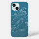 Personalisiert Skier Sketched Zeichnend auf Blue iPhone 15 Hülle