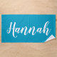 Personalisieren Sie dieses lustige, trendige Skript-Kalligrafie Strandtuch mit Ihrem Namen! Das ist die aquamarine blaue Version. Ideal für Ihren Sommerurlaub, Junggeselinnen-Abschiede, Kindersommer oder Frühlingspause!