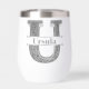 Stilvoll mit der Personalisierten U Initial Silver Monogram Thermal Wine Tumbler. Dieser elegante Schuster zeichnet sich durch ein maßgeschneidertes "U" Monogramm aus und Ihren Namen in einem atemberaubenden silbernen Design aus. Aus haltbarem, isoliertem Edelstahl behalte er Ihre Getränke stundenlang warm oder kalt. Ideal für Abenteuer im Freien, für Arbeit oder einfach nur zum Entspannen bei der Zuhause - dieser Schuster ist funktionell und elegant zugleich