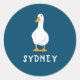 Personalisiert-White Duck Illustration Navy Blue Runder Aufkleber