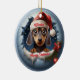 Personalisierte 3D-Dackel mit Weihnachtsmannmütze Keramik Ornament