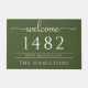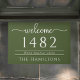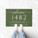 Charmante und klassische, individuelle Türmatte bietet "Willkommen" in elegantem Skript gepaart mit Familienname, Adresse und Hausnummer. Dieses Doormat wurde mit reinen Streifen-Akzenten konzipiert und bietet einen zeitlosen Look, der personalisiert an Ihren Eingang angepasst werden kann.