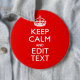 Ein personalisiertes, lebendiges, rotes Akzent, "Keep Calm" und "Carry On"-Sprichwort auf einem individuellen Geschenk. Humorvoll oder skurril versuchen Sie Ihre kreativen Worte auf den beiden bearbeitbaren Textzeilen. Vergessen Sie nicht, HAUPTSTADT-Briefe für beste Ergebnisse zu verwenden.