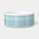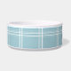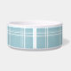 Diese Keramikhundenahrungsmittelschüssel hat ein preppy blaues und weißes kariertes Streifenmuster im Hintergrund. In der Mitte gibt es einen großen weißen Knochen mit einem leicht kundengebundenen Namen Ihres Hündchens, das in Blau geschrieben wird.