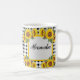 Überraschen Sie Ihr Brautparty mit dieser Personalisierten Bridesmaid-Tasse mit zeitlosen schwarzen Gingham-Mustern und hellgelben Sonnenblumen! Auf der einen Seite wird das Wort "Bridesmaid" angezeigt, auf der anderen ein anpassbarer Skriptbereich, um ihren Namen hinzuzufügen. Egal, ob Sie es als einen Bridesmaid-Vorschlag, einen Brautparty-Gefallen oder ein Junggeselinnen-Abschied-Geschenk benutzen, diese bezaubernde Tasse ist eine herzliche Art, Ihnen zu danken. Teil unserer Black Gingham & Sunflowers Kollektion - entdecken Sie mehr passende Produkte für Ihre Hochzeitsfeier und Dekoration!