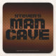 Fügen Sie mit diesen benutzerdefinierten Untersetzer eine Touch Klasse zu Ihrer Männhöhle hinzu. Das Hintergrundbild zeigt ein Diamantplattenmuster in Bronze/Kupfer, das oben und unten dunkler ist, mit einem Farbverlauf, der in der Mitte leichter wird. Es heißt "Man Cave" in einem coolen Schriftart im industriellen Stil mit Schraubenkopf-Spuren in schwarz. Passen Sie es an für personalisierte Höhlen Untersetzer.