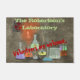 Ein creepy Labor, das Zuhause des wütenden Wissenschaftlers. Diese einzigartige Fußmatte kann für jedermann personalisiert sein, das Lieben, für Halloween zu verzieren. Ursprüngliche vektorkunst durch die Menagerie der Nachteule, c.2015.