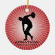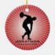 Discus Thrower Personalisierte Ornament Weihnachten 20XX. Ein Diskuswerfer wird auf einem Hintergrund mit roter Sternexplosion positioniert. Alle Texte individuell anpassbar, vorne und hinten!
