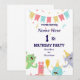 Feiern Sie mit dieser bezaubernden Einladung zum 1. Geburtstag Ihren kleinen Meilenstein! Diese individuell gestaltbare Einladung lasse Ihnen den Namen, den Geburtstag, das Party und eine persönliche Nachricht. Helles, farbenfrohes und unterhaltsames Design, das jedem ersten Geburtstagsthema gerecht wird. Features: Vollständig anpassbarer Text und Farben Druckbare oder digitale Download Größe: Standard 5 x 7 Zoll (editierbar auf Zazzle) Perfekt für Babyduschen oder Party zum 1. Geburtstag Machen Sie Ihren Geburtstag unvergesslich mit dieser charmanten Einladung!