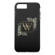 Elegante Aquarell Blätter Monogramm Name Handy Gehäuse mit einem goldenen Monogramm Initial auf einem schicken schwarzen Hintergrund. Entwickelt von Thisisnotme©