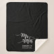 Stilvoll und unterhaltsam behalte Ihnen diese Sherpa-Decke in diesem Winter, während Sie gemeinsam auf dem Sofa schnipsen. Das Design zeigt schwarz-weiß handgeschriebene Skripttypografie "Mr. & Mrs." Der Nachname Text und Datum + Jahr der Hochzeit ist individuell auf die neuesten Hochzeitdetails angepasst. Dies ist ein großartiges Geschenk für die Neuvermählten bei der Hochzeit oder nach der Hochzeit während der Ferien.