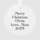 Personalisierte Weihnachtsschmuck mit einem Schmetterling auf der Vorderseite und einer persönlichen Nachricht auf der Rückseite. Lila und aquamarin.