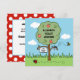 Eine süße Karte, um eine Geburt zu feiern. Die Karte zeigt eine farbenfrohe Gartenszene mit einem Apfelbaum, einer Hummel, die herumschnüffelt, und einem Ladybird, der auf dem Boden schwebt.