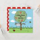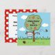 Eine süße Einladung, eine Babydusche zu feiern. Die Karte zeigt eine farbenfrohe Gartenszene mit einem Apfelbaum, einer Hummel, die herumschnüffelt, und einem Ladybird, der auf dem Boden schwebt.
