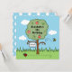 Eine süße Einladung, einen Geburtstag zu feiern. Die Karte zeigt eine farbenfrohe Gartenszene mit einem Apfelbaum, einer Hummel, die herumschnüffelt, und einem Ladybird, der auf dem Boden schwebt.