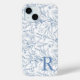 Personalisiertes Französisch floral Toile Blue Monogram iPhone 15 Fall