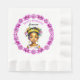Hübsche kleine Prinzessin mit einer Tiara und rosa Blume im Haar. Geben Sie den Namen in den personalisierenden Bereich ein. Papierservietten der Geburtstagspartei.