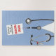 Kreatives Pflegepuzzle mit Zitat, Krankenhaus-Peeling, Stethoskop und lustigem Schweizer Armeemesser. Bearbeiten Sie Text, um den Namen der Krankenschwester hinzuzufügen.