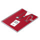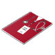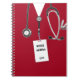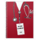Creative Krankenschwester Notizbuch mit roten Krankenhauskeuchen, lustigem Schweizer Armeemesser und ID-Abzeichen-Design. So passen Sie Text bearbeiten, um den Namen der Krankenschwester und das Jahr hinzuzufügen.
