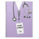 Creative Krankenschwester Notizbuch mit medizinischem Thema Lavendelkrankenhaus-Skrupel und ID-Abzeichen-Design. Bearbeiten Sie den Text, um den Namen der Krankenschwester und das Jahr hinzuzufügen.