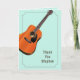 Gitarre Dankeschön-Karte mit personalisiertem Text auf der Vorderseite und Nachricht innen. Fügen Sie den Namen des Musikers mit einer Dankesbotschaft in bedrängtem gedrucktem Schriftart ein. Schwarz-grün gefaltete Karten mit orangefarbenem, akustischem Gitarrenbild auf der Vorderseite.
