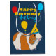 Fügen Sie Ihre eigene Nachricht und Ihren Namen zu dieser Geschenktasche, um eine besondere Geburtstagsgeschenktüte für Besitzer von Guinea Schweinefleisch zu erstellen. Dieser Geschenksack zeigt Guinea-Schweine, die in Party-Hüten mit einem vorne und einem anderen hinten gekleidet sind, sowie bunte Geburtstagsballons-Set vor marinebaublauem Hintergrund.