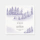 Winterhochzeit personalisierte Cocktail-Servietten mit landschaftlichem Aquarelldesign in Lavendel- und Grautönen. Die Schneeszene besticht durch eine romantische Bergwaldlandschaft mit Pinienbäumen, Driften und einer leichten Schneeflocke. Die Vorlage ist Set bis, um die Namen der Braut und Bräutigam sowie das Hochzeitstag hinzuzufügen. Wenn Sie passende Produkte wünschen, schauen Sie bitte in meine Winter Forest Kollektion.