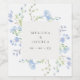 Elegante Hochzeitsflaschen-Etiketten mit einem quadratischen Rahmen von hellblauen Aquarellfarben-Blume, personalisiert mit Ihren Namen und Hochzeitsdatum in der Mitte in grau.