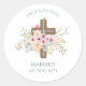 Personalisierte Hochzeit oder Jahrestag Blumenkreu Runder Aufkleber