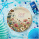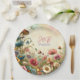 Hübsche Hütte thematische Teller für eine Hochzeit, Probe Dinner oder Brautparty Party. Aquarellpilze, Blume und Schmetterlinge in Lila, staubblau und beige. Fügen Sie die Initialen des Paares und das Hochzeitsdatum in den personalisierenden Bereich ein.