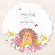 Heben Sie das Glas auf das neue Baby und schaffen Sie die perfekte Babydusche mit personalisierten Untersetzer. Mit einem kleinen Igel mit einem kleinen rosafarbenen Herz und niedlichen Rosa- und Gelbblumen ist dies eine gute Wahl für eine Babydusche im Sommer.