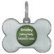 Ein Imitat mit einem grünen Ledertippchen mit Platz für den Namen Ihres Haustieres und Ihre Telefonnummer oder andere Kontaktinformationen.