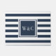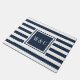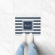 Elegante personalisierte Initialen Monogram Doormat mit einem marineblau-weiß gestreiften Muster mit dem Set Ihrer Initialen in einem marineblau-blauen Quadrat mit einem klassischen weißen Text. Personalisieren Sie Ihre Details und passen Sie die Farbe an die Farbe Ihrer Wahl an. Entwickelt von Thisisnotme©