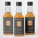 Luxuriöse elegante schwarze Leder-Optik (PRINTED), kundenspezifische Spirituosen-Mini-Flaschen-Etiketten mit einem Kupfergold-Glitzer mit Monogramm Quadrat, horizontalen Linien und personalisierte Namenssignatur-Skript. +++++ Alle Varianten der Flaschenetiketten finden Sie in der Kollektion COPY AND PASTE LINK: https://www.zazzle.com/collections/monogram_personalized_black_gold_gifts-119940943996290001