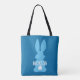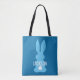 Kinderei-Jagd-Tasche blaue Häschen-Silhouette-Ostern personalisierte. Blaue Häschen-Silhouette mit den flaumigen Schwänzen. Personifizieren Sie mit dem Namen Ihr Kindes in der Mitte. Ändern Sie die Farbe des Textes, indem Sie "wählen, besonders anfertigen". Hintergrund ist blau. Niedliche personalisierte Tasche für Osterei jagt, Leckereien vom Osterhasen oder Kinder, die Liebehäschenkaninchen entwirft. Moderne stilvolle Ostern-Entwürfe für Kinder. www.SamAnnDesigns.com