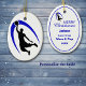 Dieses personalisierte Ornament eignet sich hervorragend für Basketballspieler, Trainer oder Fan! Es zeigt einen dramatischen schwarzen silhouetted Basketballspieler, der gerade dabei ist, den Ball zu dunkeln, mit einem hellblauen wirbelförmigen Design hinter ihm. Die Rückseite des Ornaments hat eine kleinere Version des Bildes, mit vier Textfeldern für Ihren benutzerdefinierten Text. *Clip Art, die in diesem Design verwendet wird, ist urheberrechtlich geschützt durch Encore Software, Inc., die die Nutzung für ihre Lizenzgeber erlaubt. Alle Rechte vorbehalten.