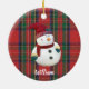 Erhellen Sie herauf Ihren Weihnachtsbaum und geben Sie eine Touch der Wärme und Aufregung der Feiertage zu Ihrer Weihnachtsdekoration mit dieser reizend Kreis-Keramik Weihnachtsverzierung. Ein reizendes Weihnachtssnowman-Druck-Set gegen einen karierten Büffelhintergrund des roten schwarzen Karos kennzeichnend, ist diese reizend Verzierung eine perfekte Weise, die Ferienzeit mit Ihrer Familie zu gedenken und macht ein großes Geschenk für alle Ihre geliebten. Personifizieren Sie sie mit Ihrer eigenen Benennung.