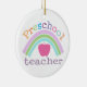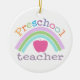 Diese personalisierte Verzierung macht ein großes Geschenk für Vorschullehrer. Front liest "Vorschullehrer" mit einem Regenbogen und einem Apfel. Die Rückseite kann mit Ihrer Feiertagsmitteilung und -namen personalisiert sein.