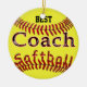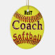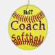 Personalisierte Softball-Verzierungen für TRAINER. Tippen Sie den NAMEN des Trainers ein oder verlassen Sie "BESTES" im Text-Kasten rechts Ihr unter, "es zu personifizieren" Bereich, der auf Ihrem Recht ist. Heller neuer gelber Softball auf der Front der Softball-Verzierung mit coolem glasigem wie "dem Softball, der in den Ball nestled ist, verlegt mit "bestem Trainer" über dem.