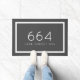Modernes, minimalistisches Doormat personalisiert mit Ihren Zuhause-Adressnummern oder anderen benutzerdefinierten Texten. Klicken Sie auf die Schaltfläche Anpassen. Wählen Sie eine beliebige Hintergrundfarbe aus, ändern Sie die Schriftart, fügen Sie Ihren eigenen Text und Ihre Fotos hinzu, um Ihren eigenen Stil zu erhalten.