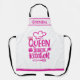 Lass der Welt wissen, wer die Königin kocht mit dieser lustigen Schürze mit heißen rosa auf Weiß und personalisiert mit einem Namen oder Monogramm. Großartiges Geschenk für den Tag der Mutter, Geburtstag oder zu jeder Zeit.
