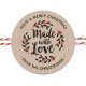 Ein personalisierter Aufkleber mit Liebe auf einem kraftfarbenen Hintergrund. Ein hübscher Beerenkrez und die Worte "mit Liebe gemacht" in einem eleganten Script-Schriftart. Eine hübsche Touch für alle Ihre handgefertigten Geschenke. Entworfen für Sie von BlackBerry Boulevard.