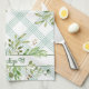 Personalisieren Sie dieses niedliche Küchentuch mit Ihrem Namen oder Ihrer Nachricht. Ein schönes, helles Design grüner Blätter gegenüber einem zarten Fensterpaneel-Karo mit diagonalen Linien.