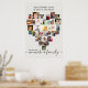 Erstellen Sie Ihr eigenes personalisiertes Poster mit 29 Ihrer Lieblings-Fotos und Ihren Familiennamen(en). Die Fotovorlage ist ein Set, um eine Foto-Collage in Form einer Liebe-Herz zu erstellen und Ihre Bilder in einer Mischung aus Portrait, Landschaft und quadratischen instragramm Formaten anzuzeigen. Laden Sie Ihre Fotos, die in Reihen arbeiten, von oben nach unten hoch. Das Design hat einen weißlich / weich grauen Hintergrund und ist handschriftlich in elegantem Skript mit der Formulierung "zusammen machen wir eine Familie". Wenn Sie eine andere Hintergrundfarbe bevorzugen würden, um Ihre Wohngestaltung zu Anzug, klicken Sie auf "Weiter anpassen" oder schreiben Sie mir, um Hilfe zu erhalten. Ein schönes Design für Ihre Fotos, Hochzeitstag oder ein Geschenk für frisch verheiratete Paare.