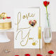 Diese romantische personalisierte Valentinstag-Grußkarte verfügt über einen Herzrahmen und ein Foto, das durch Ihr Foto ersetzt werden kann. Es enthält auch eine "Liebe du"-Nachricht in Goldfolie auf der Vorderseite mit weißem Hintergrund und eine Goldfolie "ewig" auf der Seite. Das Karteninnere enthält eine liebevolle Nachricht und Namen, die für ein personalisiertes Geschenk bearbeitet und durch Ihre Nachricht und Namen ersetzt werden können. Diese romantische Botschaft der Liebe ist perfekt, um sich mit einem anderen zu teilen. Herzlichen Glückwunsch zum Valentinstag.
