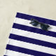 Ein auffälliges gestreiftes Strandtuch mit Marineband und weißem Streifen. Personalisieren Sie sich mit Ihrem Namen.