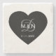 Danken Sie Ihren Gästen mit diesen hübschen Hochzeits-Untersetzerbevorzugungen oder Geschenk für die Jungvermählten. Modernes und trendy schwarzes Herz mit Monogramm/mit Monogramm Braut- und Bräutigaminitialen mit Initiale des letzten Namens. Aller Text kann redigiert werden oder gelöscht werden.