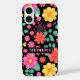 Passen Sie diese hübsche Telefonzelle mit Ihrem Namen an. Es zeichnet sich durch ein skurriles, modernes Blumendesign mit rosa, orangefarbenen und gelben Blumen aus.